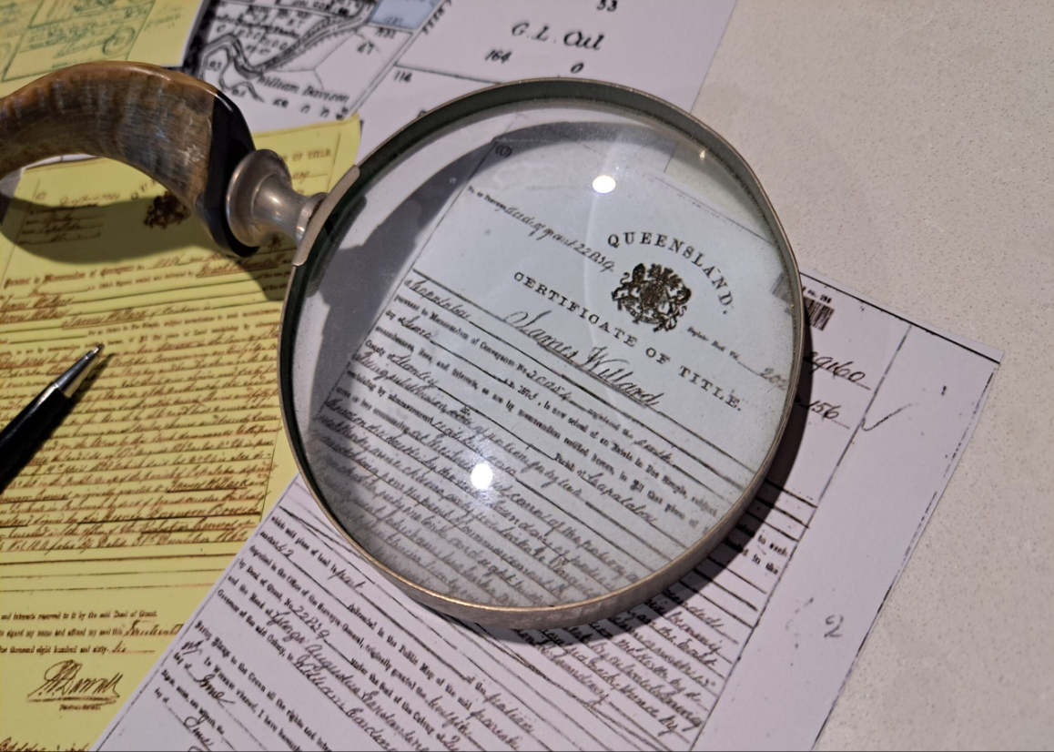 The site of the homestead was registered in 1865 to James Willard (who arrived at Moreton Bay from Plymouth in 1858) and Mark Blundell. In the same year, James and his brother Edward were granted a timber licence to clear trees on the property.